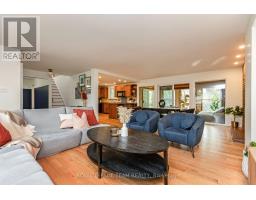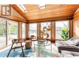No rear neighbors! This striking mid-century modern 4-bed, 3-bath home sits on a quiet street in prestigious Beaverbrook, with an oversized lot that feels like your own private retreat. Extensively renovated throughout including flush beam installed creating open concept main floor living, it blends timeless design with contemporary updates. The open-concept main floor features clean lines, oversized windows, and a striking brick feature wall with a cozy wood-burning fireplace. A true highlight is the 4-season solarium with vaulted ceilings and skylights - perfect for soaking in views of the private backyard oasis year-round. A sunny flex room on the main level offers the ideal spot for a home office or dining room. Recent updates include the kitchen, three bathrooms, banister and iron railings, hardwood flooring, lighting, and wiring. Upstairs, the primary suite boasts a custom walk-through closet and sleek 3-pc ensuite. The finished basement extends the living space with a playroom and family room. Step outside to enjoy a spacious patio with pergola, hot tub, and mature landscaping - all with no rear neighbors. Close to parks, trails, and everyday amenities, this home offers the rare combination of privacy, style, and convenience. An iconically Canadian gem in the heart of Beaverbrook! (id:61594)