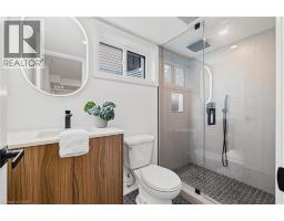 A restoration of one of Breslau's original homes, this property has features and charm that sets it apart. Professionally renovated, this 3 bed, 3 bath is loaded with high end, modern design both inside and out. Make your entrance into the sunroom which is the perfect entry way/mud room. Open concept living, the living room features bay windows, a dining room and a stunning kitchen with custom and high end design. This kitchen features an island with a breakfast bar, quartz for both the counters and backsplash, a beverage bar, and a sliding patio door leading out the balcony, perfect for BBQ. Powder room on the main floor. Upstairs features 3 bedrooms and a luxury designed bathroom. The door leading to the roof off the primary bedroom leaves possibility to create a private balcony. The second floor luxury bathroom features heated floors, a curbless shower and a soaker tub with a LED mirror and under-cabinet lighting. The basement is fully finished giving you a large Rec room and a 3pc bathroom. The laundry room has been finished for comfort and maximized storage. The exterior features an interlock pathway from the driveway to backyard. Not one but 2 garages with new roofs on both as well as a shed in the backyard. NEW Furnace & NEW windows everywhere. Multi-Use Zoning. This home was brought back to life and redesigned to maximize functionality in one of the most desired areas to live. The perfect location to live in quiet but still close to highways for commuting. Within minutes to Waterloo, Kitchener, Cambridge and Guelph, school nearby, library, parks & more. A perfect home to raise a family. Properties like these don't hit the market often. Book your showing today! (id:61594)