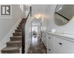 Welcome to a beautifully updated semi-detached home set in family-friendly East Waterdown. This home exudes elegance with its modern flair and designer finishes inside and out. Curb appeal is instantly inviting with an updated walkway, entry and landscaped front yard. Inside, the home feels bright and spacious with an open-concept kitchen that is both stylish and practical, complete with granite countertops, breakfast bar, backsplash, stainless steel appliances, and an abundance of cabinetry. The spacious living room offers a walkout to the rear yard, creating a seamless connection to outdoor living, while the dining area is highlighted by a bay window flooding the home with natural light. Upstairs, the primary bedroom is a true retreat, featuring wall panelling, a bay window, barn doors, dual closets, and a modern 4-piece ensuite. Two additional bedrooms, one with direct access to the well-appointed 4-piece main bathroom provide a comfortable space for children, guests, or a home office, both featuring sleek modern built-in feature walls. The fully finished lower level adds valuable living space, offering a large recreation room with custom built-in media wall with electric fireplace as the focal point—ideal for movie nights, entertaining, or a kids’ hangout. Additional finished space is ideal for an exercise room/office complemented by a laundry room, and multiple storage rooms. Outside, the fully fenced backyard is ready for family fun, complete with a wood deck with hot tub and mature trees in neighbouring yards providing excellent privacy. With too many updates and upgrades to list, this beautiful home also features an EV ready garage, accompanied by a 200amp electrical panel upgrade for a modern living experience. Offering the perfect blend of the quality of mature with the feel of something new, this modern gem is set on a premium lot just steps to beautiful Gatesbury and Cranberry Hill parks. This one is not to be missed, book your showing today! (id:61594)