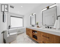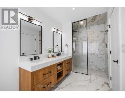 Custom-built in 2024, this contemporary detached home is set within a quiet enclave south of Kingston Rd in the highly desirable Beaches-Birchcliff neighbourhood, offering views of Lake Ontario and a seamless connection to nature. Spanning 3,605 sq ft of finished living space, including a walk-out basement, the home is designed for modern luxury family living, where architecture, interiors, and everyday function come together effortlessly.Defined by clean lines, expansive windows, and refined materials, the open-concept main floor is filled with natural light. Sunlit living, dining, and family spaces flow seamlessly, enhanced by soaring ceilings, skylights, and custom built-ins that create a calm, timeless atmosphere for daily life and entertaining. The chef's kitchen anchors the home, featuring premium Monogram appliances, custom floor-to-ceiling cabinetry, a built-in appliance garage, and a striking 10-ft centre island.A standout feature is the executive office overlooking the lake, a sophisticated workspace with panoramic water views and a quiet setting for focused work.Upstairs, four spacious bedrooms offer comfort and privacy, including a serene primary retreat with a Scandinavian-inspired five-piece ensuite and a walk-in closet with skylight. The finished walk-out basement adds versatility with 12-ft ceilings, oversized windows, and a guest bedroom ideal for extended family stays.Additional features include an attached garage, Tesla EV charger, smart home system with a dedicated server room, two laundry options, and professionally designed stone landscaping. Located minutes from the Beach, parks, trails, schools, transit, shops, and restaurants.This is modern luxury family living. Welcome to 12 Valhalla Blvd ! (id:61594)