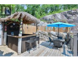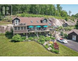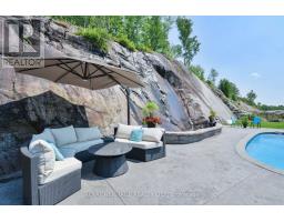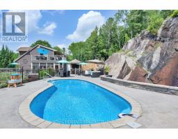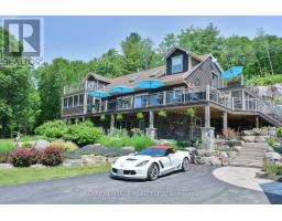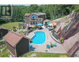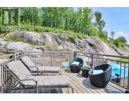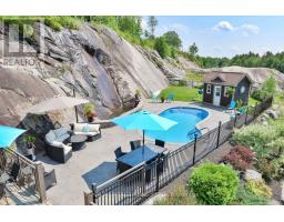 Spectacular, unique, unforgettable. These are just a few words to describe this magical, one of a kind property. Formerly featured in a Muskoka magazine, the home and property offer plenty of space for entertaining, a growing family or simply reconnecting with nature and wildlife. Design elements, including local Muskoka granite picked and split by the owners hand and built into the feature wall and kitchen island, all help to create a space that welcomes you from its front gates to its front door and beyond. Soaring vaulted ceilings and architectural beams in the main living area and primary bedroom, as well as a thoughtfully redesigned interior created during the building of a significant addition completed in 2016, provided the owner and designer an opportunity to create a spacious, interesting yet functional space. Breathtaking views from numerous balconies, windows and patios overlook the grounds, gardens, 30ft waterfall and approx. 500 ft of Mother Natures perfect river front. The in-ground salt water pool, tiki bar, infrared sauna, built in hot tub, large gym, theatre room, ball court, sandy beach with gentle water entry for swimming, dock for boating, waters edge bunkie (sleeping 4 comfortably), the huge 5 car garage, large RV shed with oil pit and even the bonfire lookout on top of the hill of your 11 acre property will afford you the last ray of sunshine with the setting sun to complete your daily living experience. Should you ever wish to leave your property, you are just a few short minutes to the heart of Huntsville by car and a short boat ride along the river to Lake Vernon and further access to Fairy, Mary and Peninsula Lakes. Pictures may speak a thousand words but this property has thousands more to share with you in person. Private showings only. (id:61594)
