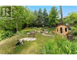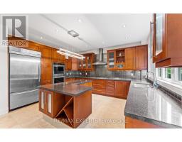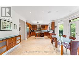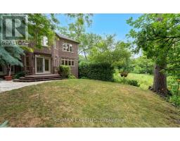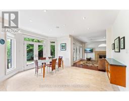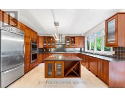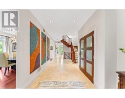 Experience unmatched privacy and tranquility in this one-of-a-kind custom-built home, nestled on a beautifully landscaped 49.9 ft x 182 ft lot backing directly onto the Humber River. With approximately 3,445 sq ft of above-grade living space, this exceptional property is located on a quiet, sought-after street in East Woodbridge, close to schools, parks, and everyday amenities. Main floor features 9-ft ceilings, expansive principal rooms, and elegant finishes including hardwood and travertine tile flooring throughout. The gourmet kitchen is designed for both functionality and entertaining, showcasing a large center island, stainless steel appliances, and custom cabinetry. A bright breakfast area and family room walk out to a serene backyard setting offering unparalleled natural beauty along the riverbank. The additional open-concept living and dining area creates the perfect environment for hosting, while a thoughtfully designed laundry/mudroom with garage access adds everyday convenience and functionality. Upstairs, a large skylight sits high above the open staircase, you'll find 8-ft ceilings, hardwood flooring, and ample storage. The primary bedroom is a private retreat, featuring a balcony with river views, walk-in closet, and a spa-like ensuite with soaking tub and separate shower. Each additional generously-sized bedroom includes its own ensuite bathroom and walk-in closet, offering comfort and privacy. The finished basement features 9-ft ceilings and a versatile layout. Highlights include a private exercise room with floor-to-ceiling mirrors, a cozy entertainment room with gas fireplace, a 3-piece bathroom with steam shower, a second kitchen perfect for extended family or entertaining and a dedicated home office. The backyard is enveloped by mature trees and the natural beauty of the Humber River. This private outdoor space features multiple patios and seating areas, perfect for relaxing, entertaining, or simply enjoying the tranquil sounds of nature. (id:61594)