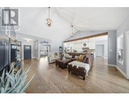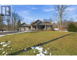 Welcome to this beautifully appointed custom-built ranch offering just under 2,000 sq ft of thoughtfully designed main floor living space, set on a private 1-acre country property backing onto bushland. The open-concept main level features a stunning Pioneer Cabinetry kitchen with quartz countertops, large centre island, corner pantry, and premium finishes, flowing into the bright great room with access to covered front and rear porches with stamped concrete accents. The spacious primary suite offers a luxurious ensuite with double vanity, walk-in tile shower, and soaker tub, and convenient main floor laundry adds everyday functionality. The finished lower level provides two generous bedrooms, a beautifully appointed bathroom with tiled walk-in shower and dual rainfall heads, and a large recreation room perfect for movie nights or family gatherings. The attached garage is fully insulated and heated and includes a 60-amp EV rough-in. A standout feature is the impressive 34' x 60' insulated shop with in-floor heating, 100-amp subpanel, LED lighting, overhead doors, and mezzanine - ideal for hobbies, storage, or recreational use. The backyard is a true retreat with a 15' x 24' heated concrete in-ground pool, expansive concrete decking, additional seating area, and a custom rear deck with recessed hot tub and privacy fencing. With covered porches, a livestock enclosure, outbuilding, and expansive outdoor space ideal for growing families and entertaining, this property offers the perfect balance of comfort, functionality, and country living just minutes from town. (id:61594)