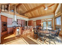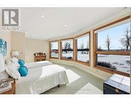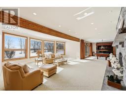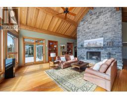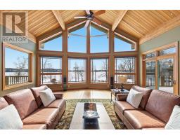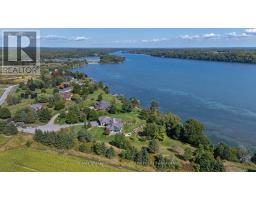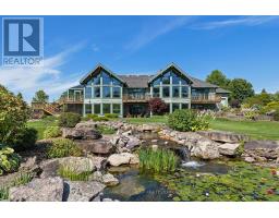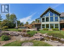 Extraordinary waterfront estate set along the prestigious shores of the St. Lawrence River, mins. from Kingston with quick access to Hwy 401. Designed for discerning buyers, this custom-built home delivers seamless indoor-outdoor living in one of Eastern Ontario's most coveted waterfront settings. Positioned in the sheltered waters of the Bateau Channel, this level property offers exceptional boating directly from your doorstep. Cruise the 1000 Islands, enjoy waterfront dining, and return home to your private dock - a true boater's paradise. Inside, soaring cathedral ceilings with warm cedar and fir beams complement expansive architectural windows framing panoramic river views. A dramatic limestone fireplace anchors the grand living space on both levels, while a wall of glass windows provides nature filled water views. The designer kitchen flows into curated living and dining areas, finished with impeccable craftsmanship and timeless sophistication. Endless cabinetry, stone countertops and high end appliances enhance your dining experience. Lovely primary bdrm w/gas fireplace overlooking the water, spa like bath and walk in closet create a private retreat. Spacious sunroom, office w/built ins, design studio, laundry and 3 pc bath complete the main level. Walkout lower level offers 2 guest bdrms w/access to their own full bath, games room, private sauna, and built-in theatre with reclining seating and big-screen projection delivering a true resort-at-home experience. Radiant geothermal in-floor heating, high-velocity multi-zone A/C, 400-amp service, automated lighting and window coverings, multi-zone audio, and 4 fireplaces ensure comfort and performance without compromise. Professionally landscaped grounds create a private sanctuary with a serene stream feature, heated walkway, hot tub, and 4-car garage. This is waterfront living without compromise where exacting craftsmanship, thoughtful design, and an unrivaled setting come together in one extraordinary offering. (id:61594)