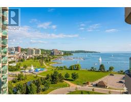 Barrie Condo Corner presents an incredible opportunity at the coveted Grand Harbour Condominiums, right on Barrie's waterfront. This bright and spacious 1342 square foot, 2-bedroom plus den suite is move-in ready and has been thoughtfully upgraded for modern living. The refreshed kitchen features stainless steel appliances, tiled backsplash, new counters, and a deep double sink with a new faucet, setting the tone for style and functionality. A sparkling new dining room chandelier, updated vanities, and engineered hardwood floors add elegance and comfort throughout the home. Sunlight floods the unit, which features wrap-around west, north and east views through the large windows giving it a nice open and airy feel. The rare natural gas fireplace is a beautiful attribute in this unit making it a cozy focal point. Step out onto the private balcony and take in the stunning views of Kempenfelt Bay, Barrie Marina and downtown Barrie. The spacious primary bedroom is a peaceful retreat featuring a walk-in closet with built-in organizers and an ensuite bathroom that features a jetted tub and a separate tiled shower. In-suite laundry, one owned underground parking space, and a storage locker complete this unit. Residents enjoy resort-style amenities including an indoor pool, hot tub, sauna, exercise room, party room, and games room. All of this is just steps from waterfront trails, downtown Barrie, and everything the city has to offer. This is more than a condo. It is a waterfront lifestyle, combining comfort, style, and the best of Barrie living. (id:61594)