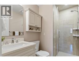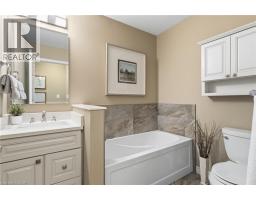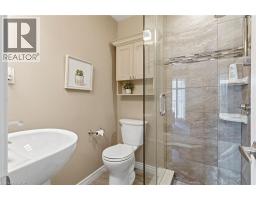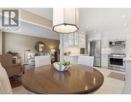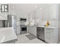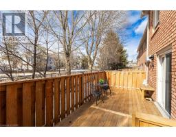 Welcome to this beautifully updated 2-storey townhome in the highly sought-after Enclaves community, nestled in Burlington’s desirable Maple neighbourhood. Tucked away on a very private cul-de-sac with little traffic, this home offers peace, quiet, and added safety in an unbeatable location just steps to downtown Burlington, Spencer Smith Lakefront Park, the beach, Mapleview Shopping Centre, restaurants, with easy access to the QEW and GO Station. Offering 1,646 sq ft of stylish living space, this 3-bedroom, 3-bath home backs onto a tranquil creek with mature trees, providing exceptional privacy and a serene natural setting. The home features rich hardwood flooring throughout, California shutters, a hardwood staircase, and updated lighting. The main floor includes a convenient 3-piece bath. A spacious family room with a cozy gas fireplace opens to a private, fenced deck overlooking the creek—perfect for relaxing or entertaining. Garage entry leads to the laundry room for added convenience, and the main-level bedroom offers flexible living options for guests or a home office. The custom-updated kitchen is designed to impress, complete with quartz countertops, ample cupboards, crown moulding, under-cabinet lighting, pot lights, ceramic tile, stylish backsplash, and KitchenAid stainless steel appliances. Upstairs, you’ll find two more generous bedrooms with hardwood flooring and beautifully renovated bathrooms. The primary suite offers a walk-in closet, updated 3-piece ensuite, and a private balcony—ideal for enjoying your morning coffee. Lower level offers a blank slate and has ample storage area. Perfect for those seeking a maintenance-free lifestyle in a prime location, this stunning townhome truly has it all. Seize the opportunity to make it yours. (id:61594)