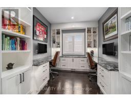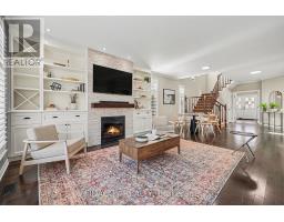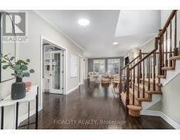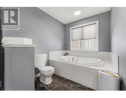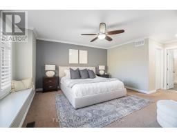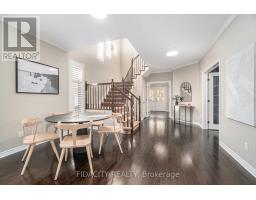 This exceptional 4-bedroom, 4-bathroom detached home stands out from every angle, offering a seamless blend of luxury, thoughtful design, and rare privacy with no rear neighbours. From the moment you arrive, the striking curb appeal makes a lasting impression, highlighted by a beautifully crafted stone walkway, high-end exterior lighting, and a covered front porch. Inside, a spacious foyer welcomes you with soft contemporary tones, rich dark hardwood floors, and refined finishes including crown moulding and California shutters throughout. The open-concept main level is designed for both comfort and style, featuring a stunning kitchen with deep-toned cabinetry, quartz countertops, a full wall of pantry storage, and a peninsula island with seating. A bright breakfast area provides direct access to the backyard. The living room offers a warm and inviting atmosphere, anchored by a custom stone fireplace wall with built-in shelving, and enhanced by smooth ceilings and pot lighting throughout. A well-appointed main-floor office offers dual workstations, ideal for productivity at home. Upstairs, the primary bedroom serves as a relaxing retreat with a cozy window bench, walk-in closet, and spa-inspired ensuite. Three additional bedrooms, a full bathroom, and a generous laundry room with built-in storage complete the upper level. The fully finished basement is designed for entertaining, featuring a 9-foot wet bar with a restaurant-style feel, commercial-grade draft beer fridge and bar fridge, a third full bathroom, and a spacious recreation area. Outdoors, the private backyard offers a peaceful escape with tiered landscaping and mature greenery. The patio features a gazebo-covered entertainment area with dedicated lounge space and a full electrical setup. Located in the desirable Jackson Trails community, this home is ideally situated close to Catholic and Public schools, parks, walking paths, shopping, and dining, with convenient access to Highway 417. (id:61594)