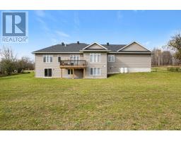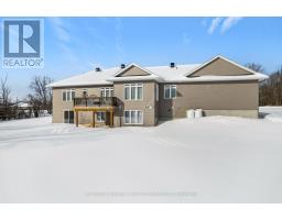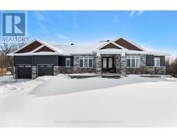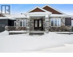 Elegant walkout bungalow built in 2022, with impressive balance of architecture style and modern contemporary design. Front Cortona stone with accents of quality Maibec wood siding both complement each other while blending into the surrounding two acres. Front porch graciously welcomes you with set of beveled glass doors that open into big bright foyer and double closet. The open floor plan is a palette of calming soft colours and full of natural light flowing in from all the tall windows. Modern hardwood, luxury vinyl and ceramic flooring through this spacious 3+2 bedroom, 3.5 bathroom home. Living room has showcase recessed shelving next to propane fireplace that is the ideal gathering place for family and friends. Dining area defined by attractive drop ceiling plus wrap-around windows and patio doors to deck. You'll love the kitchen with its two-tone cabinetry, gold-accent hardware, quartz countertops and subway tile backsplash; grand chef island-breakfast bar fits 4-5 comfortably. Primary suite retreat includes quality blackout curtains and full wall of closets; luxurious ensuite quartz vanity, makeup nook, touch-light mirrors, soaker tub and glass shower with luxury body-spa showerhead. Two more large bedrooms. Main bathroom quartz vanity, touch-light mirror and clock display; shower has exotic tile and body-spa showerhead. Main floor laundry room with cabinets and window. Lower level features luxury vinyl floors and pot lights. Rec room patio doors open to outdoors. Family room has area for entertainment centre. Den provides flex space, could be hobby room or office. Lower level also has two more bedrooms; one includes walk-in closet. Lower level 3-pc bathroom quartz vanity, touch-light mirror and soaker tub, Both lower and main floors access attached double garage with its storage loft and yard door. Architectural roof shingles. And, under Tarion warranty. Located on township paved road with school bus pickup. Hi-speed and cell service. 10 mins to Perth. (id:61594)