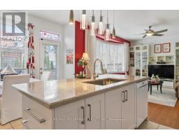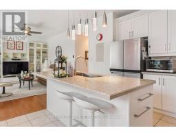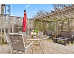 A Touch of Class.This beautifully maintained all-brick home, enhanced with attractive detailing, offers exceptional curb appeal and sits directly across from a well-kept park. Westerly sunset views are delightful.Step out from the kitchen to a private, deck - perfect for summer evenings - featuring a stylish overhang and trellis walls that create a serene outdoor retreat.The main floor living room is highlighted by a stunning palladium-style window, while the adjoining dining room provides ample space for formal entertaining.The renovated white kitchen is both elegant and functional, showcasing a large centre island with, breakfast bar, oversize divided sink, quartz countertops for durability and ease, and an abundance of smart storage solutions including pull-out drawers, a built-in desk area, and dedicated spaces for recycling and waste. Enjoy casual breakfasts overlooking the deck before unwinding in the open-concept family room, complete with a beautiful bowed window and custom built-in cabinetry.Upstairs, you'll find four well sized bedrooms, one currently used as a craft room/home office.The primary suite features a walk-in closet and a private ensuite bathroom with a separate shower. For added convenience, there is a large laundry room with storage on this level.The finished basement offers a welcoming extension of the home-ideal for family gatherings and relaxed entertaining-with a comfortable TV area and electric fireplace. This level also includes a two-piece bathroom, ample storage, and a dedicated workshop space.This is a home that has been lovingly cared for-ready for its next owners to move in and enjoy. (id:61594)