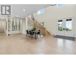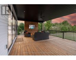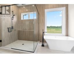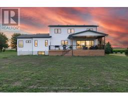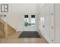 Welcome to this beautifully crafted, fully custom home, offering nearly 5,400 sqft, on 1.34 acres, only 20 minutes from London. Walk in to find a 20ft foyer, and a fully open concept great room with floor to ceiling windows overlooking your expansive property with 10ft ceilings throughout. The chef-inspired kitchen offers an 11ft island with mitered waterfall countertops, and floor to ceiling custom cabinetry, along with new and premium Fisher & Paykel appliances including a double oven, ideal for entertaining. Off the great room, a striking 10ft glass wine storage with premium up-lighting. The primary bedroom is located on the main floor, along with a 5 pc ensuite bath and an oversized his and hers walk-in closet. On the main floor you will also find a custom built mudroom off of the attached 3-car garage, laundry, office, and oversized pantry with quartz countertops. As you walk up the grand staircase, to an oversized walkway overlooking the entrance, you will find an additional 3 large bedrooms, all with attached bathrooms with 9ft ceilings. The fully finished basement offers true 9ft ceilings with full sized windows, 2 additional bedrooms, a 3pc bathroom and an area that has been roughed in for a wet bar if you choose. The 3-car garage provides 15ft ceilings, for an optional car lift to be installed, along with an additional 100amp service ready to support a shop or pool at the rear. Outside you will find a 20ft x 25ft covered deck, and 17ft x 20ft sun deck, with gas and water installed for the potential of an outdoor kitchen. The rear deck also has a full surround sound system installed accompanied by a TV to create the perfect outdoor entertainment space. This home offers panoramic country views with rolling fields and evening sunsets right off your front covered porch. Located on a bus route, and minutes Ailsa Craig and Lucan shops, this move-in-ready home is loaded with upgrades and offers the perfect blend of luxury, space, and tranquility. (id:61594)