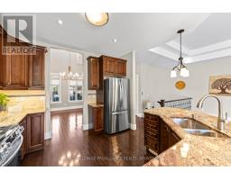 Elegant Living in Central Kingston - 1213 Atkinson Street. Nestled on a beautifully landscaped lot in the coveted Lyndenwood neighbourhood, 1213 Atkinson Street blends timeless curb appeal with custom craftsmanship and thoughtful modern updates. This Haynes-built home is a rare gem designed to impress while delivering everyday comfort. From the all-brick, stone, and stucco exterior to the stunning new stone walkway and lush front gardens, this home makes a striking first impression. Step inside to soaring ceilings, elegant pillars, and rich hardwood floors. A formal dining room with vaulted ceilings serves as an comfortable lounge a perfect space to unwind with guests, enjoy evening cocktails, or curl up with a good book. This room's versatility allows it to easily convert to a formal dining function or continue as a cozy yet upscale entertaining area. The heart of the home is the spacious open-concept kitchen, living, and dining area. Granite countertops, warm custom cabinetry, and a large island invite gathering, while the gas fireplace and coffered ceilings add charm and character. Walk out to the private, fenced backyard where the lilac blooms and the carefully curated landscaping frame the natural gas BBQ area and deck ideal for summer evenings at home. The main level offers a serene primary bedroom with a walk-in closet and convenient ensuite, plus a second bedroom and full bath; these are separated from the living room by a custom pocket door for added privacy. Main-floor laundry adds everyday convenience. Downstairs, the fully finished lower level is its own retreat featuring a massive rec room, two additional bedrooms, a workout area, and another full bathroom, perfect for guests or teens. With approximately 2,500 sq ft of finished living space, recent upgrades include designer lighting and enhanced landscaping in both front and back yards. This home offers upscale comfort in one of Kingston's most central and convenient communities. (id:61594)