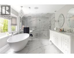 Nothing to do but move in and enjoy. 5,446 total square feet of impeccably maintained living space. Gorgeous backyard with pool and patios backing onto green space. Dramatic entry to home with soaring ceiling height with skylight, Scarlett O’Hara staircase and honed marble floor tiles. Huge primary suite with luxurious 6 piece en-suite and walk-in closet with organizers. The en-suite has a dual frameless shower with Riobel plumbing fixtures including body jets, stand-alone tub over-looking the backyard, two vanities with Swarovski crystal hardware, heated floors, all very tastefully done. Solid wood custom kitchen cabinets with quartz countertops, new appliances, built-in eat-in area, and niche to do homework. Open to family room, great for entertaining. Extensive plaster crown mouldings throughout the main level. Reno’d laundry room. Newly renovated lower level with plush carpet, many pot lights, new 3 piece bath and fresh paint. Awesome backyard backing onto green space. In-ground pool, gazebo, landscaping, and privacy fencing, fire bowls and patios for gatherings. Thoughtfully updated with recent upgrades to bathrooms, laundry room, furnace, a/c, windows, electrical panel, pool equipment and much more. Fantastic location on a quiet street in an established neighbourhood known for its school district. Convenient access to highway and GO station. (id:61594)