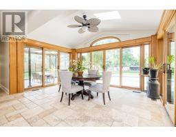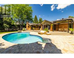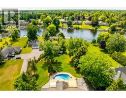A rare offering along a serene stretch of the Rideau River just moments from the heart of Manotick, this exceptional 3-bedroom, 2.5-bathroom estate bungalow is set on a beautifully landscaped 2.25-acre lot with 60 feet of pristine waterfront. A private paradise, the property features a resort-style backyard with a gorgeous salt water in-ground pool, mature trees, and sweeping views of the river. Step inside to discover a grand entry adorned with travertine marble flooring, leading to a spectacular library crowned by a vaulted cedar-plank ceiling. Floor-to-ceiling bookshelves, complete with a rolling ladder, create an atmosphere of refined charm, while a dramatic double-sided fireplace connects this space to the expansive sunken living room and rear deck beyond. The chef's kitchen is a showpiece, seamlessly open to the main living areas; designed for both entertaining and daily luxury. Rich granite countertops, an abundance of custom cabinetry, and a high-end gas range are paired with a unique breakfast nook offering warmth and style. Bathed in natural light, the four-season sunroom is a seamless extension of the living space, with multiple sliding glass doors opening to the tranquil grounds. The primary suite is a true retreat, with direct access to the deck, a cozy gas fireplace, custom walk-in closet, and an opulent 5-piece ensuite complete with double vanities, soaking tub, and glass-enclosed shower. The partially finished lower level with new flooring & 9ft ceilings offers flexibility for additional living or recreation space. Recently updated landscaping and a lush canopy of mature trees provide privacy and timeless beauty. Nestled in one of Ottawa's most coveted communities, this home is just minutes from boutique shops, fine dining, excellent schools, and the village charm that makes Manotick so desirable. (id:61594)