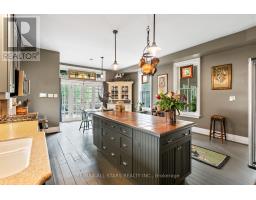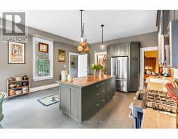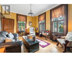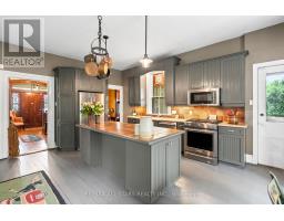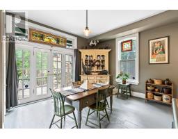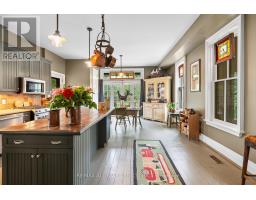 Step into a bygone era with this beautifully preserved 1.5-storey century home, circa 1874, known as the "Robert Mooney Residence," set on a mature, tree-lined lot in the heart of Uxbridge. Rich in history and timeless appeal, this 3-bedroom, 2-bathroom home offers 2,366 sq.ft. of refined living space for those who value heritage, craftsmanship, and enduring character. From the moment you arrive, the ornate wrought iron fencing, classic proportions, and inviting porch hint at the story within. Inside, original details take centre stage-soaring ceilings, intricate wood trim, crown mouldings, ceiling medallions, and tall windows that fill the home with natural light. The formal living and dining rooms are elegant yet welcoming, perfect for gathering and entertaining in a setting that feels both grand and intimate. The heart of the home is a thoughtfully updated kitchen that blends modern function with classic style, opening to a sunlit breakfast area and a charming 3-season sunroom-ideal for slow mornings and relaxed evenings overlooking the private, treed backyard. Upstairs, the primary suite offers a peaceful retreat with a dormer window, walk-in closet with laundry, and a beautifully appointed ensuite. Additional bedrooms and a clawfoot tub bath continue the home's tradition of comfort and character. Outdoors, enjoy a serene setting with mature trees, a spacious deck, and covered porch, along with an impressive detached garage (approx. 40' x 24', built 2013) featuring a 19' cathedral ceiling, reclaimed doors, hardware, lighting, stained glass accents, and its own electrical panel-perfect for hobbyists or additional workspace. A rare opportunity to own a piece of Uxbridge history-where craftsmanship, charm, and lifestyle come together. (id:61594)
