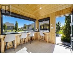 Modern elegance meets effortless entertaining in this stunning home set on 1.28 acres. Designed for entertaining, this home features in-ceiling speakers in the kitchen, living room, and outdoor area, and is wired for sound in the poolside bar, the perfect setting for gatherings both large and small. A covered front porch leads into an open entry where craftsmanship and attention to detail are immediately evident. Throughout the home, 8" baseboards, high ceilings, and upgraded window and door casements enhance the sense of space and sophistication. The living room impresses with its recessed waffle ceiling, crown moulding, custom built-ins with integrated lighting, and a beautifully detailed fireplace mantel. The open-concept kitchen offers ceiling-height cabinetry, under-cabinet lighting, stainless steel appliances, and large island with breakfast bar. The adjoining dining area features a recessed ceiling, ample room for large gatherings, and a walkout to the backyard. The primary suite offers a tranquil retreat with a tray ceiling, crown moulding, private walkout, walk-in closet, and a luxurious ensuite featuring heated floors, dual vanity with quartz counters, freestanding tub, and glass-enclosed shower. Two additional bright bedrooms and a full bathroom are situated on the opposite side of the home for added privacy. Completing the main level is a powder room, convenient laundry, and access to the double car garage with soaring 13' ceilings. The lower level expands the living space with a generous rec and media area, built-ins, a games area, guest bedroom, and full bathroom. Step outside to your backyard oasis featuring a fenced yard, sprawling covered deck with added privacy, landscaped patio, inviting inground pool, lounging areas, and a stylish pool house with bar and changing area. Ideally located just moments from amenities with easy access to Hwy 2 and the 401, this property offers modern design, thoughtful details, and resort-inspired living all in one. (id:61594)
