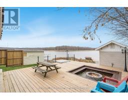 Top 5 Reasons You Will Love This Home: 1) Stunning panoramic views of peaceful Hogg Bay await a fishing enthusiast and those seeking direct access to Georgian Bay in this beautifully updated, move-in-ready four-season home 2) Wood vaulted ceilings and an open-concept main level blend rustic charm with modern updates, creating a welcoming and stylish retreat 3) Each bedroom offers a private, updated ensuite for a luxurious experience, ideal for families and hosting guests 4) Outdoors, you'll discover a wraparound deck with sleek glass railings, a cozy firepit, a refreshing outdoor shower, a private guest bunkie, and a dock for seamless access to the water 5) Conveniently located in Victoria Harbor, with nearby amenities just a short drive away and within easy reach of Highway 12 access. 1,669 fin.sq.ft. Age 80. (id:61594)