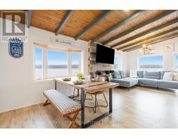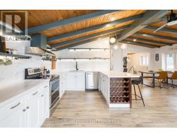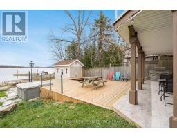 Top 5 Reasons You Will Love This Home: 1) Stunning panoramic views of peaceful Hogg Bay await a fishing enthusiast and those seeking direct access to Georgian Bay in this beautifully updated, move-in-ready four-season home 2) Wood vaulted ceilings and an open-concept main level blend rustic charm with modern updates, creating a welcoming and stylish retreat 3) Each bedroom offers a private, updated ensuite for a luxurious experience, ideal for families and hosting guests 4) Outdoors, you'll discover a wraparound deck with sleek glass railings, a cozy firepit, a refreshing outdoor shower, a private guest bunkie, and a dock for seamless access to the water 5) Conveniently located in Victoria Harbor, with nearby amenities just a short drive away and within easy reach of Highway 12 access. 1,669 fin.sq.ft. (id:61594)