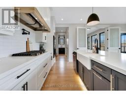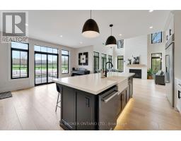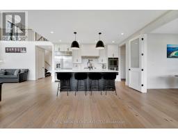 This stunning custom-built home blends modern elegance with practical living, offering high-end finishes and generous space inside and out. From the moment you enter the bright, welcoming foyer, you're greeted by an oversized walk-in closet that doubles as a mudroomperfect for keeping everything organized. Just off the entryway, a spacious home office offers an ideal work-from-home setup, complete with ample lighting and wiring for a multi-camera security system. The main floor boasts an airy open-concept layout with vaulted ceilings and striking cathedral windows that flood the living room with natural light. A propane fireplace adds warmth and charm, creating a perfect space for both relaxing and entertaining. At the heart of the home is a chef-inspired kitchen featuring a massive quartz island that serves as a prep area and social hub. High-end appliances include a five-burner gas cooktop, double wall ovens, a stainless steel refrigerator, and a matching dishwasher. Thoughtful details like a pot filler, soft-close cabinetry, custom lighting, and a separate canning/prep room enhance both style and function. The adjoining dining area overlooks the private backyard and tranquil ravine, offering a beautiful setting for everyday meals and special gatherings. Upstairs, you'll find three spacious bedrooms, a full bathroom, and a convenient laundry room. The luxurious primary suite features a walk-out balcony with peaceful views of a nearby horse paddock and hot tub, perfect for quiet mornings or evenings. The spa-like ensuite includes a deep soaker tub, double rainfall shower, and large walk-in closet for a true retreat experience. The fully finished basement offers even more living space, with a large family room, fourth bedroom, and full bathroom ideal for guests or extended family. Additional highlights include heated garage floors, premium finishes throughout, and a serene, natural setting that offers privacy and beauty. (id:61594)