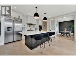This stunning custom-built home blends modern elegance with practical living, offering high-end finishes and generous space inside and out. From the moment you enter the bright, welcoming foyer, you're greeted by an oversized walk-in closet that doubles as a mudroom—perfect for keeping everything organized. Just off the entryway, a spacious home office offers an ideal work-from-home setup, complete with ample lighting and wiring for a multi-camera security system. The main floor boasts an airy open-concept layout with vaulted ceilings and striking cathedral windows that flood the living room with natural light. A propane fireplace adds warmth and charm, creating a perfect space for both relaxing and entertaining. At the heart of the home is a chef-inspired kitchen featuring a massive quartz island that serves as a prep area and social hub. High-end appliances include a five-burner gas cooktop, double wall ovens, a stainless steel refrigerator, and a matching dishwasher. Thoughtful details like a pot filler, soft-close cabinetry, custom lighting, and a separate canning/prep room enhance both style and function. The adjoining dining area overlooks the private backyard and tranquil ravine, offering a beautiful setting for everyday meals and special gatherings. Upstairs, you’ll find three spacious bedrooms, a full bathroom, and a convenient laundry room. The luxurious primary suite features a walk-out balcony with peaceful views of a nearby horse paddock and hot tub—perfect for quiet mornings or evenings. The spa-like ensuite includes a deep soaker tub, double rainfall shower, and large walk-in closet for a true retreat experience. The fully finished basement offers even more living space, with a large family room, fourth bedroom, and full bathroom—ideal for guests or extended family. Additional highlights include heated garage floors, premium finishes throughout, and a serene, natural setting that offers privacy and beauty. (id:61594)