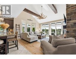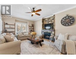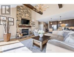 Welcome to this beautifully maintained 2+2 bedroom Strathmore Model bungalow located in the highly sought-after Watermark Adult Lifestyle Community in Mono and set on a premium ravine lot with breathtaking views over Monora Park. Offering approx. 1,983 sq ft on the main level plus a builder-finished walkout basement, this home delivers nearly 3,200 sq ft of finished living space. The main floor features 9-ft ceilings, wide-plank white oak engineered hardwood (2023), and elegant living and dining spaces with crown moulding and upgraded finishes. The stunning great room boasts vaulted ceilings, floor-to-ceiling windows with transoms, and a striking custom chandelier, creating a warm, resort-inspired feel. Two custom floor-to-ceiling gas fireplaces add both style and comfort. The upgraded kitchen offers oak cabinetry, granite counters, custom backsplash, and a functional layout. The primary suite features scenic park views and a spa-like 5-piece ensuite, while a second bedroom/office and 3-piece bath complete the main level. The bright walkout basement includes two additional bedrooms, a full bath, and a spacious open-concept living area with direct backyard access. Professionally landscaped grounds, featured in Living Spaces magazine, showcase a private backyard oasis with a water feature, stonework, and an extended deck with glass railing and retractable awning overlooking the ravine. Residents enjoy access to a private community centre with fitness, theatre, party room, and more, all steps to trails and just minutes to Orangeville amenities, Hockley Valley Resort, and Island Lake Conservation Area. (id:61594)