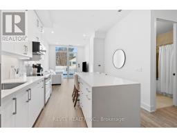 Welcome to Suite 123, a beautifully designed 667 sq. ft. unit + private outdoor patio. A residence that blends modern comfort with upscale, custom finishes. Featuring 10-foot ceilings and floor-to-ceiling windows in the living area, this home is filled with natural light and offers an airy, sophisticated atmosphere.The open-concept kitchen has been fully upgraded, showcasing custom cabinetry extended to the ceiling, integrated appliances with full size stove and microwave , and a stunning custom quartz countertop island with seating for up to 10-perfect for entertaining, hosting, or everyday living. Thoughtfully designed custom closets throughout elevate both function and style. A spacious den offers versatility as a home office or guest space, while two full bathrooms provide added convenience and privacy. Step outside from your private ground floor entrance to your walk-out terrace, complete with a dedicated gas line for bbq and water bib, creating an ideal setting for outdoor dining, entertaining, or relaxing evenings at home. Residents of King Terraces enjoy access to a curated collection of amenities, including a resort-style pool, sauna, steam room, rooftop terrace, fitness centre, elegant party lounge, and 24-hour concierge service. Suite 123 is where luxury design meets everyday ease-a rare ground-floor retreat with exceptional upgrades and seamless indoor-outdoor living. (id:61594)