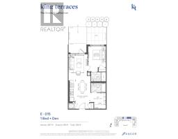 Welcome to Suite 123, a beautifully designed 667 sq. ft. unit + private outdoor patio. A residence that blends modern comfort with upscale, custom finishes. Featuring 10-foot ceilings and floor-to-ceiling windows in the living area, this home is filled with natural light and offers an airy, sophisticated atmosphere.The open-concept kitchen has been fully upgraded, showcasing custom cabinetry extended to the ceiling, integrated appliances with full size stove and microwave , and a stunning custom quartz countertop island with seating for up to 10-perfect for entertaining, hosting, or everyday living. Thoughtfully designed custom closets throughout elevate both function and style. A spacious den offers versatility as a home office or guest space, while two full bathrooms provide added convenience and privacy. Step outside from your private ground floor entrance to your walk-out terrace, complete with a dedicated gas line for bbq and water bib, creating an ideal setting for outdoor dining, entertaining, or relaxing evenings at home. Residents of King Terraces enjoy access to a curated collection of amenities, including a resort-style pool, sauna, steam room, rooftop terrace, fitness centre, elegant party lounge, and 24-hour concierge service. Suite 123 is where luxury design meets everyday ease-a rare ground-floor retreat with exceptional upgrades and seamless indoor-outdoor living. (id:61594)