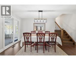 Welcome to this beautifully updated 4-level backsplit on the Stoney Creek Mountain, offering over 2,500 sq ft of finished living space and fantastic in-law suite potential. The heart of the home is the renovated kitchen (2022), designed for both style and function with quartz countertops, an undermount double sink, open wood shelving, and a convenient serving area that flows into the dining room. The adjoining dining space features a built-in bar nook and sliding doors that lead to the charming 3-season sunroom (14' x 12'), perfect for morning coffee or evening wine. From here, you’ll find direct access to the garage and a handy walk-up from the lower level—an ideal setup for a future in-law suite or separate living area. The bright living room boasts a beautiful feature wall and a large bow window overlooking the front yard, filling the space with natural light. Upstairs, you’ll find three comfortable bedrooms and an updated 5-piece bathroom. The lower level expands your living space with a cozy family room with electric fireplace, a fourth bedroom with double closet, and a renovated 3-piece bathroom (2022), plus that direct walk-up to the sunroom—another great element for multi-generational living. The fully finished basement adds even more versatility, offering a rec room with bar and storage closet, a bonus area perfect for a gym or office, and a spacious laundry room with cupboards, folding counter, and extra storage. Additional features include pot lights and newer light fixtures, updated interior doors, and carpet-free flooring (except on the lower level). Outside, enjoy an exposed aggregate driveway and walkways, two backyard patios, and plenty of greenspace for relaxing or entertaining. All of this is within walking distance to schools, parks, conservation trails & waterfalls, shopping, cinemas, and close to sports fields, dog park, Valley Park Community Centre & Pool, and easy Linc access—offering a wonderful blend of comfort, convenience, and potential. (id:61594)