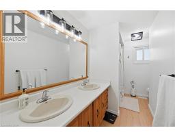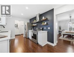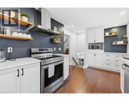 Welcome to this beautifully updated 4-level backsplit on the Stoney Creek Mountain, offering over 2,500 sq ft of finished living space and fantastic in-law suite potential. The heart of the home is the renovated kitchen (2022), designed for both style and function with quartz countertops, an undermount double sink, open wood shelving, and a convenient serving area that flows into the dining room. The adjoining dining space features a built-in bar nook and sliding doors that lead to the charming 3-season sunroom (14' x 12'), perfect for morning coffee or evening wine. From here, you’ll find direct access to the garage and a handy walk-up from the lower level—an ideal setup for a future in-law suite or separate living area. The bright living room boasts a beautiful feature wall and a large bow window overlooking the front yard, filling the space with natural light. Upstairs, you’ll find three comfortable bedrooms and an updated 5-piece bathroom. The lower level expands your living space with a cozy family room with electric fireplace, a fourth bedroom with double closet, and a renovated 3-piece bathroom (2022), plus that direct walk-up to the sunroom—another great element for multi-generational living. The fully finished basement adds even more versatility, offering a rec room with bar and storage closet, a bonus area perfect for a gym or office, and a spacious laundry room with cupboards, folding counter, and extra storage. Additional features include pot lights and newer light fixtures, updated interior doors, and carpet-free flooring (except on the lower level). Outside, enjoy an exposed aggregate driveway and walkways, two backyard patios, and plenty of greenspace for relaxing or entertaining. All of this is within walking distance to schools, parks, conservation trails & waterfalls, shopping, cinemas, and close to sports fields, dog park, Valley Park Community Centre & Pool, and easy Linc access—offering a wonderful blend of comfort, convenience, and potential. (id:61594)