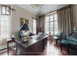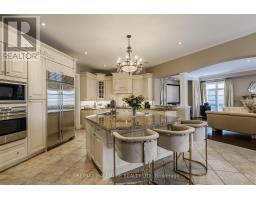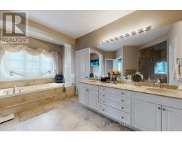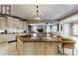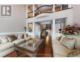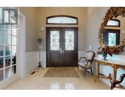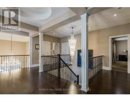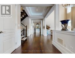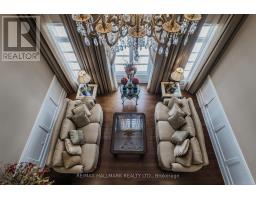 Exquisite detached residence offering approx. 6,000 sqft (5,990 sqft as per Builders floorplan) of refined living space, meticulously maintained by the original owners & set on a premium corner lot in the prestigious Belfountain community. This elegant 4-bdrm home offers ensuites for every bedroom, a walk-out basement, & exceptional curb appeal. The impressive main level showcases 10' ceilings, a grand double-door entrance, rich hardwood flooring, pot lights, blt-in speakes, & detailed wainscoting in the formal living and dining rooms. The thoughtfully designed layout is ideal for both everyday living & entertaining. The gourmet kitchen is appointed with granite countertops, blt-in appliances, oversized centre island, premium custom cabinetry & opens seamlessly to the family rm. A private library with vaulted ceiling & French doors offers a quiet workspace or retreat. Iron picket railings & an oak staircase lead to the upper & lower levels, highlighting the home's craftsmanship throughout. The primary suite is not to be missed w/fireplace, sep sitting area & spa-like ensuite. Additional features incl a rare 4-car tandem garage with interior access, extended driveway parking for up to 8 vehicles, plywood subfloors, 2 cold rooms, rough-in for a 3-piece bath in bsmnt, and a separate bsmt entrance offering excellent future potential. Ideally located minutes from shopping, golf courses, Highway 404, and top-tier schools including St. Andrew's College. An exceptional property combining luxury, space, & lifestyle in a sought-after setting. (id:61594)