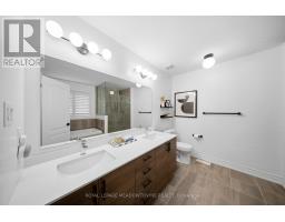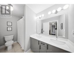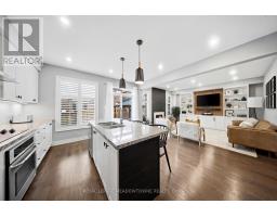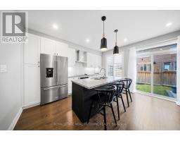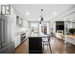 Welcome home to this beautifully maintained 4-bedroom residence nestled on a quiet, family-friendly street. The open-concept main floor features rich hardwood flooring, a bright dining area with a large window, and a spacious living room complete with a cozy gas fireplace. An elegant oak staircase with wrought iron pickets adds a touch of sophistication. The upgraded kitchen is designed for both style and function, offering stainless steel appliances, quartz countertops, a breakfast bar, and a walkout to a fully fenced backyard with an interlock patio-perfect for entertaining and outdoor enjoyment. Enjoy the convenience of main floor laundry with direct access to the garage, featuring a durable painted epoxy floor. Upstairs, the generous primary suite boasts a walk-in closet and a luxurious 5-piece ensuite with a separate shower. Three additional well-sized bedrooms and a full bathroom complete the upper level. The finished basement adds valuable living space with a rec room and an additional bathroom-ideal for family gatherings or a home retreat. Ideally located close to parks, sports fields, top-rated schools, scenic trails along 16 Mile Creek, the Milton Sports Centre, shopping, dining, and Rattlesnake Golf Club-this home offers the perfect blend of comfort, convenience, and community living. (id:61594)