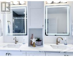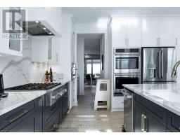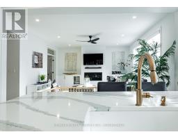 This executive home has been extensively upgraded and offers 4+1 bedrooms and 5 baths, with more than 4000 sqft of elegant living space. Facing Waterside Way Park, the property provides beautiful views of the Great Cataraqui River from its covered front porch. Inside, you'll find 9 ft ceilings on the lower level and main floor, maple hardwood flooring, and custom window treatments throughout much of the home. The open-concept design includes a gourmet kitchen featuring quartz countertops, a spacious island with breakfast bar, an adjoining breakfast nook that overlooks the backyard, a butler's pantry, and a large great room with a linear gas fireplace. There's also a private office accessible via French doors. For formal occasions, the home boasts a dedicated dining area, a separate living room, and a practical mudroom connecting to the two-car garage. The second-floor has four bedrooms, a laundry room with a convenient 10 ft counter, three bathrooms-two of which are ensuites-and a roomy primary suite with a luxurious five-piece ensuite that offers heated floors, a free-standing tub, and a glass shower. The mostly finished lower-level features high ceilings, around 825 sqft of builder-finished space, a rec room with a gas fireplace and wet bar, a four-piece bathroom, and a spacious 12x20 exercise or flex room that could serve as a fifth bedroom. Additional upgrades include: premium cabinetry, high-quality plumbing fixtures, recessed lighting throughout, smart home features, EV pre-wiring, a custom Dolby Atmos home theatre, smart motorized Hunter Douglas shades, UniFi wired outdoor cameras, NVR and wired ethernet for security, programmable Nest thermostat, upgraded tiling, and distinctive baseboards and trim. (See the attached Property Upgrade List for further details.). Located within walking distance of Riverview Shopping Centre and just a short drive to CFB Kingston, RMC, and all downtown Kingston amenities, this property is in an extremely convenient location. (id:61594)