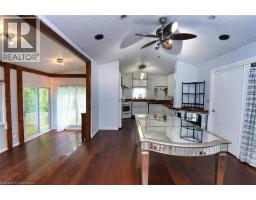 Welcome to the Ponderosa Nature Resort, a tranquil and inclusive environment for nature enthusiasts looking to relax, and enjoy recreational activities in a clothing-optional setting. This community has strict policies regarding guest conduct to ensure a comfortable and respectful environment for all. Lots of amenities including resort style indoor and outdoor pool and clubhouse, events, volleyball and tennis courts, and surrounded by conservation areas with trails. This year round, one floor home is approx 1210 sq ft featuring an open concept floor plan with laminate and hardwood flooring throughout, family room or primary bedroom with propane gas fireplace, walk in closet. Neutral decor. Open concept white kitchen with live edge counters and hands free faucet which opens to the step down live edge living room area that looks onto the green space. 4pce bath with newer double sinks and faucet, den for guests. Fees are 1350/month & incl water, prop taxes, garbage removal and buyer must be approved by the Park. Bonus: Laundry area, forced air heating/cooling, newer fascia, backyard fenced in. (id:61594)