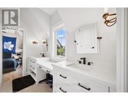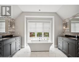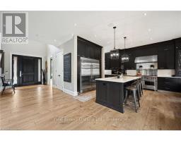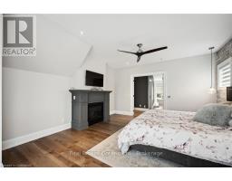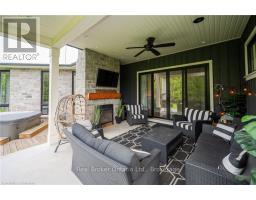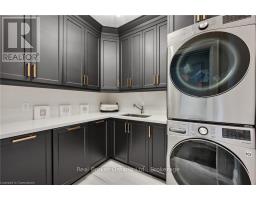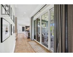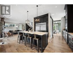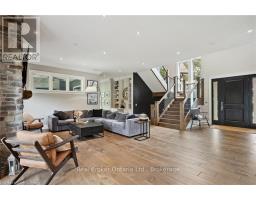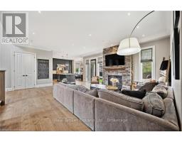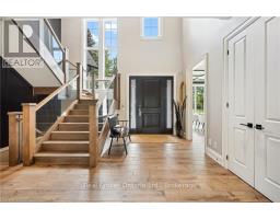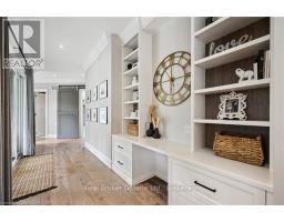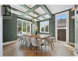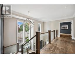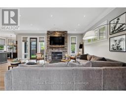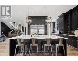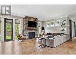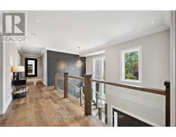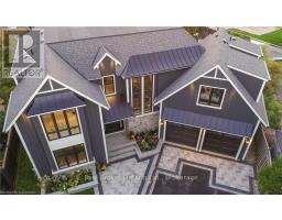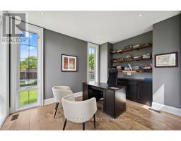 Welcome to 1247 Wood Place a stunning custom home. Architects Willmott & Strickland designed this incredible home. Nestled on a premium pie-shaped lot, this luxurious 2-storey detached home offers approx. 3,879 sq. ft. above grade, plus a full (partially finished) basement with 2 additional bedrooms and a rec room. The main level impresses with a grand 2-storey foyer, hardwood floors, a gourmet kitchen with quartz counters, high-end appliances (Wolf, Miele, Electrolux, KitchenAid), butlers pantry, and built-in wine fridge. The living room features floor-to-ceiling windows, gas fireplace, and walkout to a professionally landscaped backyard with covered lounge, gas fireplace, hot tub, and concrete deck. Upstairs, the primary suite offers 2 walk-in closets, 5-pc ensuite with heated floors, gas fireplace, and French doors. Three additional bedrooms include a Jack-and-Jill bath and a private ensuite. A main-floor bedroom doubles as a home office with custom cabinetry. The finished basement includes a 3-pc bath, media-ready rec room with built-in sound system, and full home automation infrastructure. Additional features: double garage with 2 Tesla chargers, 200-amp service, Vantage home automation, ELK security with GSM backup, Generac generator switch, VanEE air exchange, Ubiquity Wi-Fi system (6 pods), central vac, and 175 LED pot lights. Located on a quiet street with exceptional curb appeal, this home is the perfect blend of modern design, comfort, and technology. Overall, 1247 Wood Place offers a blend of peaceful residential living with convenient access to several top schools, recreational facilities, shopping centers, and transportation, making it a highly desirable location in Oakville. (id:61594)