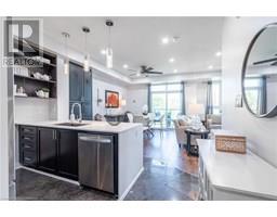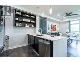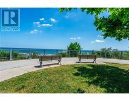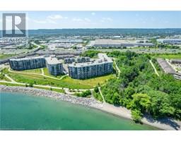 Welcome to this breathtaking and exceptionally spacious 1 bedroom + den condo, situated just steps from Lake Ontario! Enjoy the convenience of an open-concept layout, underground parking for one vehicle, and a unit-level storage locker. From the moment you step inside, you are greeted by tall ceilings, tasteful finishes, and plenty of natural light. The kitchen features dark-toned cabinetry, full-size stainless steel appliances, ample storage, and beautiful stone countertops with a waterfall design siding the peninsula. Adjacent to the kitchen, the dining area features a sliding door walkout to your private balcony, overlooking a trail and greenery. The spacious living room is lovely and the perfect spot for relaxing. The bedroom is a retreat of its own, complete with ample natural light, a large walk-in closet, and a stunning 3-piece ensuite bathroom with a rainfall shower. Additionally, enjoy partial views of Lake Ontario from the bedroom! A great-sized den is located near the front of the unit, ideal for use as a home office or hobby room. A gorgeous 4-piece bathroom and a laundry room complete this lovely home. This well-maintained mid-rise condominium offers retreat-style living with a party room, a fitness room, ample visitor parking, and a rooftop terrace with panoramic lake views and plenty of seating. There is a walking trail that runs alongside the condominium and leads to a beautiful beach, the perfect spot to take in peaceful sunrises by the water. This serene location is just steps from the waterfront and close to numerous parks, schools, restaurants, and more. Ideal for commuting, enjoy easy highway access to the QEW Toronto and Niagara, and to downtown Burlington and Hamilton. Now is your chance to immerse yourself in the fabulous lifestyle this great home offers! (id:61594)