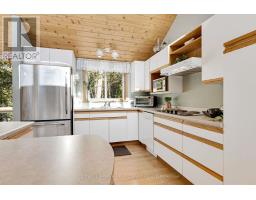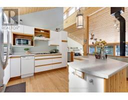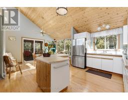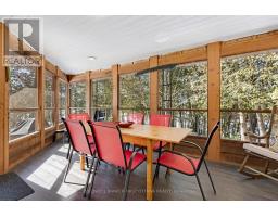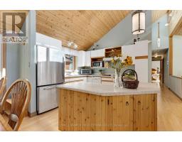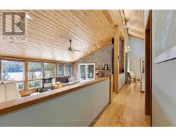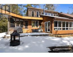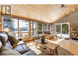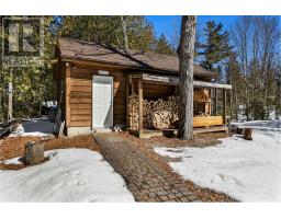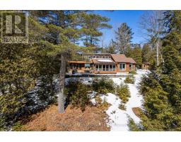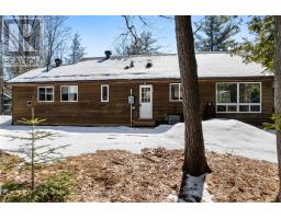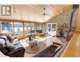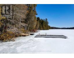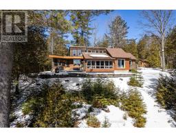 Picture this: coffee on the dock, still water stretching out in front of you, and nearly 800 feet of shoreline to call your own. That's a Tuesday morning here.Tucked at the end of the road on a private 1.23-acre peninsula, this 4-season home sits on one of the region's most sought-after lakes. Palmerston is known for deep, clean water, incredible fishing, and uncrowded shores. Properties like this one do not come up often.Step inside to soaring 12-foot vaulted ceilings finished in cedar tongue and groove, a sunken living room that draws you toward the lake through full patio doors, and an open-concept kitchen and dining area with maple hardwood floors, centre island, and generous cabinetry. The kitchen opens to a large screened porch, the kind of room where families naturally gather for long evenings playing games while the sun sets outside.Two of three bedrooms offer their own patio doors with direct lake views, and the primary bedroom features a recently renovated ensuite bathroom (2021). A new furnace and air conditioning system (2021) keeps you comfortable year-round.Outside, the property feels like your own private park. A newer deck (2022) sits at the water's edge, connected to a floating dock (2023) for swimming and easy boat access off the shoreline. A large detached garage with power gives you serious storage and workshop potential, and a separate bunkie provides overflow sleeping for guests or a quiet workspace away from the main home.Being offered fully furnished and equipped, this is a true turn-key waterfront property. Paddle boards, kayaks, and a canoe are included and ready to go. A 2019 pontoon boat and aluminum fishing boat are also available for purchase, so you can be on the water the day you move in.Located roughly 1.5 hours from both Ottawa and Kingston, this is the kind of place where a family can spend the whole summer, work remotely through the week, and never want to leave. Move in, push off the dock, and don't look back. (id:61594)