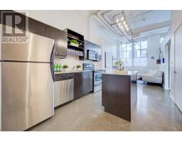 Welcome to Unit 126 at the Kaufman Lofts, a cozy and character-filled 1-bedroom, 1-bathroom home nestled in Kitchener's sought-after Innovation District. This iconic mid-rise building is a celebrated landmark that blends authentic industrial heritage with modern living, featuring polished concrete floors, soaring 13' ceilings, expansive windows, and other true loft details throughout. The open-concept living space is warm and inviting with a built-in fireplace, while the eat-in-kitchen offers ample storage, granite countertops, stainless steel appliances, and modern light fixtures. The bedroom includes a walk-in closet, and the unit is complete with in-suite laundry (2022 washer and dryer), parking, and a locker. Residents enjoy premium amenities including a rooftop terrace perfect for BBQs and a party room, all located just steps from Google, Communitech, KPMG, Deloitte, the UW School of Pharmacy, two LRT stops, and the Kitchener GO Station, with easy access to highways, parks, schools, and trendy local shops. (id:61594)