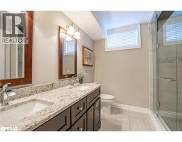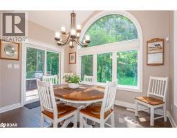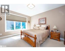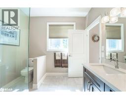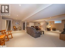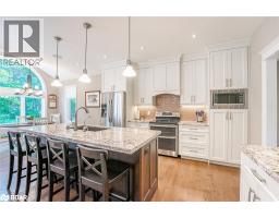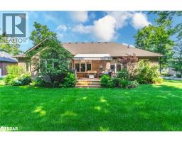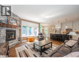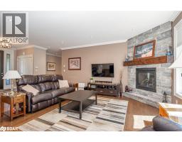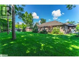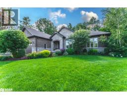 ELEGANTLY CRAFTED EXECUTIVE BUNGALOW ON HALF AN ACRE IN A SOUGHT-AFTER NEIGHBOURHOOD! Designed to impress, this one-of-a-kind custom home delivers upscale living in a highly coveted neighbourhood surrounded by natural beauty. Set on a 104 x 208 ft lot just 5 minutes from Barrie, with quick access to trails, Vespra Hills Golf Club, and Snow Valley Ski Resort, this property showcases exceptional curb appeal with a stately brick and stone exterior, stone walkway, covered front porch, and striking front door framed by elegant architectural detailing. A triple-wide driveway and three-car garage provide ample parking to match the home's grandeur. Built with 2 x 6 kiln-dried lumber, a silent floor system, thermal pane windows, Energy Star rated low E glass, and durable aluminum soffits and eaves, this home is as solid as it is stylish. The 1,900 sq ft main floor features 9 ft ceilings, crown moulding, pot lights, solid interior doors, and an upgraded trim and millwork package. A gourmet kitchen stands out with granite counters, stainless steel appliances, soft-close cabinetry, a custom backsplash, and a wood-toned island contrasted with white cabinets. A bright breakfast area with a walkout to the deck and a formal dining room both feature elegant arched windows. The great room offers a stone fireplace with a wood mantle, while the primary suite includes a walk-in closet and an ensuite with quartz counters, a double vanity, and a glass-enclosed shower. Additional features include main floor laundry with garage access, upgraded toilets and faucets, hardwood and ceramic tile flooring, and a finished basement with rec room, fireplace, office, exercise room, and full bath. The backyard offers a forest backdrop, an expansive deck, a retractable awning, and a multi-zone irrigation system. Equipped with an HRV system, 200-amp panel, alarm, sound system, central vac, and Generac generator, every inch of this home reflects thoughtful design and an exceptional standard of living! (id:61594)