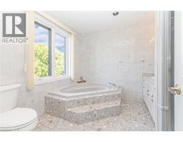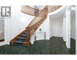 Stunning Owner-Built Home on Premium Corner Ravine Lot – East-End Hamilton! This freshly painted residence offers approx. over 4,000 sq. ft. of living space, a triple-wide driveway, and 2-car garage, combining elegance with functionality. Step into a grand foyer featuring a striking spiral staircase and discover a thoughtfully designed layout with 4 bedrooms, 4 bathrooms, and 2 kitchens. The main floor boasts a spacious living/dining area with vaulted ceilings, a private office, a cozy family room, and a large eat-in kitchen with a center island and ample cabinetry. Convenient main floor laundry is also included. The primary suite offers a luxurious ensuite with a Jacuzzi tub and a walk-in closet with bonus access to an additional room – perfect as a second closet or private retreat. The fully finished basement features a second kitchen, additional laundry, three additional rooms, and a separate entrance from the garage. Additional highlights: irrigation system, leaf-filtered covered eavestroughs on the lower level, and proximity to excellent schools, shopping, transit, and major highways. A rare opportunity in a sought-after neighborhood – spacious, versatile, and move-in ready! (id:61594)