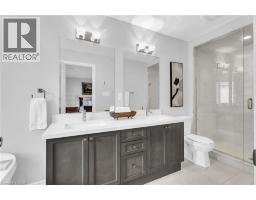This beautifully upgraded 3-bedroom, 3-bathroom freehold end-unit townhome by Fernbrook is located in the highly desirable Rockwell Estates of Rockwood. With outstanding curb appeal and uninterrupted views of Rockmosa Park, this home offers both style and comfort for growing families or those ready to move up from condo living. The open-concept main floor boasts 9-foot ceilings, oversized doors, upgraded millwork, surround sound, and gleaming quarter-sawn white oak hardwood. A stylish kitchen features a large center island, quartz countertops, exceptional cabinetry, and top-of-the-line WiFi enabled LG black stainless appliances perfect for family living and entertaining. Upstairs, the spacious principal bedroom offers a stunning custom walk-in closet and a spa-like ensuite with heated floors, a soaker tub, and a frameless glass shower. The second-floor laundry with premium washer, dryer, and cabinetry adds everyday convenience. Additional upgrades include 9 foot ceilings in the lower level, an oak staircase with custom banisters, upgraded bathroom cabinetry, a garage outfitted with double loft storage, epoxy floors, and an EV charging station. The lower level is ready for finishing with oversized windows, rough-in for a bathroom, and upgraded insulation ideal for creating a playroom, home office, or rec space. Families will love the community, with walking trails, Rockwood Conservation, Rockmosa Park, soccer and tennis courts, Pickleball, a dog park, library, schools, and the YMCA Early-ON Learning Center all nearby. Commuters benefit from quick access to Guelph, Highway 7, GO Transit, and the airport. This one-of-a-kind home combines modern design, premium upgrades, and a family-friendly community an exceptional opportunity in Rockwood. (id:61594)
