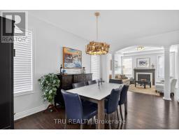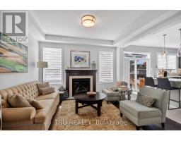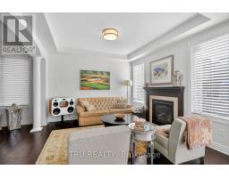 This beautifully appointed single-family home with a 2-car garage offers style, comfort, and thoughtful design throughout. The main floor features rich hardwood flooring and a warm, inviting living room centered around a cozy gas fireplace. Elegant pillars and a graceful archway create a refined separation between the living and dining rooms while maintaining an open, flowing layout. Designer lighting is showcased throughout the home, adding a sophisticated touch to every space.The chef's kitchen is sure to impress, featuring high-end appliances, a gas range, premium granite countertops, and ample workspace for cooking and entertaining. Upstairs, hardwood continues along the staircase and upper landing. The generous primary bedroom includes a large walk-in closet and a luxurious ensuite complete with granite counter, dual sinks, a separate shower, and a relaxing soaker tub. Bedrooms two and three are conveniently connected by a Jack-and-Jill bathroom. A large upstairs laundry room adds practicality and includes a newer Samsung washer and dryer. Above the garage, an extra-large great room filled with natural light provides the perfect space for a family room, office, or recreation area.The professionally finished basement offers even more living space, making this home ideal for families and entertaining alike. The fully landscaped front and back yards feature low-maintenance artificial grass, a beautiful flagstone patio, and thoughtfully designed garden spaces-perfect for relaxing or entertaining. With no lawn to mow, you'll have more time to enjoy peaceful strolls through the beautiful forest directly across the street. Welcome home! (id:61594)