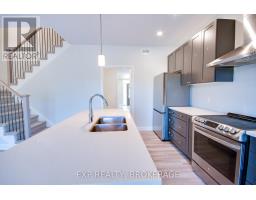 This 3-bedroom, 2.5-bath townhome in popular Trails Edge offers 1,682sq/ft of well-planned living space. Features include 9-foot ceilings on the main floor, ceramic tile foyer, laminate flooring in principal rooms, and a spacious living room with pot lights, corner gas fireplace, and patio doors to the backyard. The open kitchen boasts a large centre island with sink and excellent layout for entertaining. Convenient main floor laundry/mudroom. The primary bedroom includes a walk-in closet and 4-piece ensuite bath. Additional features: basement bathroom rough-in, patio door walkout, HRV system, and glass-railed rear deck. Close to parks, trails, shopping, restaurants, schools, and Highway 401 access.Property sold as-is, where-is. No representations or warranties. Offers subject to solicitor review. (id:61594)