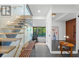 Welcome to 127 Peridot Private, an exceptional residence in an award-winning enclave of just seven luxury homes by Gemstone Developments. This exclusive community blends refined design, natural surroundings, and a prime central location. As the only home in the community featuring an extended private driveway and back deck, as well as incredible additional custom windows, this home offers rare, unobstructed views of the Experimental Farm and the Rideau Canal. Winner of a GOHBA award for interior design, this 3-bedroom, 4-bathroom home showcases over 2,400 sq. ft. of thoughtfully curated living space. The main level is perfect for stylish entertaining, featuring a chef's kitchen with a waterfall quartz island, custom cabinetry, gas range, walk-in pantry with sink, and designer finishes. Two elegant living areas with upgraded gas fireplaces and a sleek powder room complete the space. Amazing views from every room and private balcony off the back living room. Upstairs, the serene primary suite impresses with expansive windows and a spa-inspired ensuite with a soaker tub, expanded two-person glass shower, double vanity, and bidet. Two additional bedrooms, a full bath, and a laundry closet with a sink and custom cabinetry provide flexibility for guests or a home office. Ground level features a spacious foyer and a versatile area currently used as a stylish home gym, easily adaptable as a family room or office, along with a convenient powder room. Upgraded stringer staircase with open glass panels adds a striking architectural element while preserving the homes airy, contemporary feel. An extended lower back deck provides direct access to a beautifully landscaped backyard - offering a peaceful retreat surrounded by nature. Just moments from Little Italy, Dows Lake, and the Civic Hospital, with walking and bike paths at your doorstep. Visit the website for full list of upgrades. (id:61594)