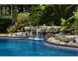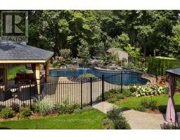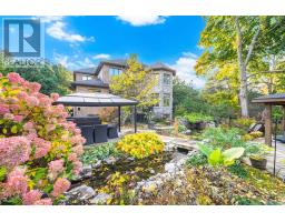 An extraordinary opportunity to own a truly exceptional estate property set on a rare 60 x 388-foot lot, backing onto a forested ravine and the tranquil Cooksville Creek. This remarkable setting offers unparalleled privacy and a natural backdrop seldom found in such a prestigious neighbourhood. The backyard is a private resort-style oasis, featuring an inground Solda pool (2021), hot tub, elegant gazebo, poolside outbuilding, and a serene fishpond with fountain-an ideal space for both relaxation and sophisticated outdoor entertaining. The residence showcases luxurious finishes and superior craftsmanship throughout, including solid oak flooring and refined appointments in quartz, granite, and marble. Custom cabinetry is thoughtfully integrated, complemented by a designer walk-in dressing room adjoining the primary bedroom, creating a truly elevated retreat. The home offers exceptional functionality with a main-floor office/den, a spacious second-floor laundry room, and a tandem garage equipped with a car lift, accommodating up to four vehicles, complete with built-in cabinetry-a rare and highly desirable feature. The fully finished lower level is designed for entertaining and lifestyle enjoyment, featuring a walkout to the backyard, an impressive bar area, greenhouse room, exercise room, and a generous recreation space with a fireplace, ideal for hosting or unwinding in comfort. Both the front and rear exteriors are professionally landscaped, with an investment exceeding $300,000, creating exceptional curb appeal and a beautifully curated outdoor environment. The widened driveway accommodates up to six vehicles, enhanced by five bollards at the entrance for added security and peace of mind. Lower windows have Security Film. Perfectly situated in one of Mineola's most prestigious and highly sought-after enclaves, this property offers a rare combination of luxury, privacy, natural surroundings, and refined living-an outstanding residence for the most discerning buyer. (id:61594)