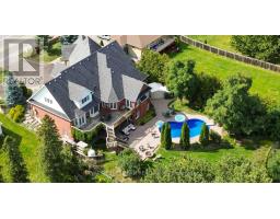 Truly one-of-a-kind, this custom 4+2 bedroom, 5-bathroom estate offers over 6,500 sq ft of luxurious living space on a spectacular 245-ft deep treed ravine lot. Designed with multi-generational living in mind, this home features a spacious open-concept layout, a fully finished walkout basement with separate entrance, and flexible living areas ideal for extended family or in-law accommodation.The gourmet kitchen is the heart of the home, complete with quartz countertops, oversized island, walk-in pantry, built-in coffee bar, and breakfast area overlooking a private backyard retreat. The upper level includes 4 large bedrooms and a media room, while the basement offers 2 additional bedrooms, a large rec room, office, spa-like bathroom, and cozy in-floor hydronic heating-perfect for independent living with comfort and privacy.Step outside to your own resort-style oasis: an elevated deck with ravine views, covered walkout patio, in-ground pool, jacuzzi hot tub, built-in fire pit, gas BBQ hookup, and a handcrafted wood-burning pizza oven. Whether entertaining or unwinding, this backyard has it all.An attached 882 sq ft 3-car garage with heated workshop, garden door access, and ample parking adds function to elegance. Located minutes from Hwy 407 and steps to top schools, parks, big box stores, Cineplex, and more, this exceptional home blends space, style, and multi-generational living in one of Clarington's most desirable settings! (id:61594)