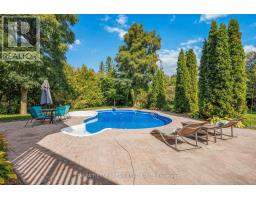 Truly one-of-a-kind, this custom 4+2 bedroom, 5-bathroom estate offers over 6,500 sq ft of luxurious living space on a spectacular 245-ft deep treed ravine lot-an opportunity that is nearly impossible to replicate today, as you could not build a home of this size or acquire a property like this for under $2 million. Designed with multi-generational living in mind, this home features a spacious open-concept layout, a fully finished walkout basement with separate entrance, and flexible living areas ideal for extended family or in-law accommodation.The gourmet kitchen is the heart of the home, complete with quartz countertops, oversized island, walk-in pantry, built-in coffee bar, and breakfast area overlooking a private backyard retreat. The upper level includes 4 large bedrooms and a media room, while the basement offers 2 additional bedrooms, a large rec room, office, spa-like bathroom, and cozy in-floor hydronic heating-perfect for independent living with comfort and privacy.Step outside to your own resort-style oasis: an elevated deck with ravine views, covered walkout patio, in-ground pool, jacuzzi hot tub, built-in fire pit, gas BBQ hookup, and a handcrafted wood-burning pizza oven. Whether entertaining or unwinding, this backyard has it all.An attached 882 sq ft 3-car garage with heated workshop, garden door access, and ample parking adds function to elegance. Located minutes from Hwy 407 and steps to top schools, parks, big box stores, Cineplex, and more, this exceptional home blends space, style, and multi-generational living in one of Clarington's most desirable settings! (id:61594)