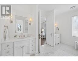 A Masterpiece of Modern Luxury in Pickering's Coveted Bay Ridges by the Lake. Custom-built in 2019, this spectacular and grand Georgian -Style residence offers over 4,000 sq. ft. of total living space defined by top-of-the-line finishes and architectural scale. The journey begins at the grand 8-foot fiberglass front door, opening to a foyer inlaid with imported Italian marble mosaics and a soaring open-concept floor plan. With 10-foot ceilings on the main level and 9-foot on the second, the home feels incredibly bright and airy, anchored by 6-inch Canadian-made oak hardwood floors, and elegant coffered ceilings. The heart of the home is a chef's dream kitchen, featuring a professional Thermador appliance package with panelled integration, Caesarstone countertops and an impressive butler's pantry. The living room features a custom marble surround for the gas fireplace. Every detail has been curated for the discerning buyer, from the powder room's marble vanity and Italian marble floors to the custom blinds and draperies crafted from imported Italian fabrics. The second level continues the theme of excellence with custom wainscotting and custom organizers in every bedroom closet. The primary retreat is a true sanctuary, boasting a spa-like ensuite with imported Italian tile, double Caesarstone vanities, freestanding soaker tub, and an oversized shower with drying area.The quality craftsmanship and luxury extend into the professionally finished 9-foot ceiling basement, featuring oversized windows that flood the full in-law/nanny suite with natural light. The exterior is equally impressive, showcasing custom precast stonework, a pool-sized backyard with an oversized interlock patio, a pergola, and a custom-built greenhouse. The garage features polyaspartic flooring, wall-to-wall storage, and an electric car charger. Nested on a quiet court steps from the lake, beach, parks and schools. This home is truly a rare find. (id:61594)