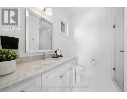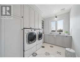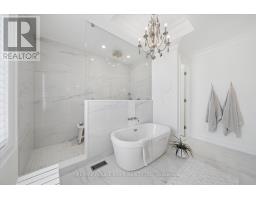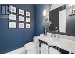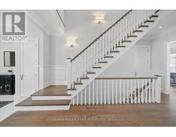 A Masterpiece of Modern Luxury in Pickering's Coveted Bay Ridges by the Lake. Custom-built in 2019, this spectacular and grand Georgian -Style residence offers over 4,000 sq. ft. of total living space defined by top-of-the-line finishes and architectural scale. The journey begins at the grand 8-foot fiberglass front door, opening to a foyer inlaid with imported Italian marble mosaics and a soaring open-concept floor plan. With 10-foot ceilings on the main level and 9-foot on the second, the home feels incredibly bright and airy, anchored by 6-inch Canadian-made oak hardwood floors, and elegant coffered ceilings. The heart of the home is a chef's dream kitchen, featuring a professional Thermador appliance package with panelled integration, Caesarstone countertops and an impressive butler's pantry. The living room features a custom marble surround for the gas fireplace. Every detail has been curated for the discerning buyer, from the powder room's marble vanity and Italian marble floors to the custom blinds and draperies crafted from imported Italian fabrics. The second level continues the theme of excellence with custom wainscotting and custom organizers in every bedroom closet. The primary retreat is a true sanctuary, boasting a spa-like ensuite with imported Italian tile, double Caesarstone vanities, freestanding soaker tub, and an oversized shower with drying area.The quality craftsmanship and luxury extend into the professionally finished 9-foot ceiling basement, featuring oversized windows that flood the full in-law/nanny suite with natural light. The exterior is equally impressive, showcasing custom precast stonework, a pool-sized backyard with an oversized interlock patio, a pergola, and a custom-built greenhouse. The garage features polyaspartic flooring, wall-to-wall storage, and an electric car charger. Nested on a quiet court steps from the lake, beach, parks and schools. This home is truly a rare find. (id:61594)