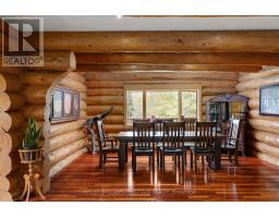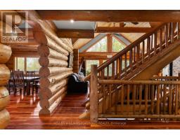 Welcome to Eagles Nest Retreat - the adult oasis and playground you've always dreamed of. This one-of-a-kind, premium Douglas Fir log cabin is nestled on a peaceful, 2.5-acre wooded lot, offering unmatched serenity and seclusion. In summer, drop your boat or jet ski into one of the nearby motorized lakes for a day on the water, or enjoy a quiet paddle on a nearby non-motorized lake. In winter, embrace the wonderland, spend your days riding skidoos or hitting the slopes at Sir Sam's Ski Hill.The thoughtfully curated grounds feature a private chipping green with sand traps, horseshoe pits, a sprawling fire pit, and an entertainers patio that truly goes above and beyond. Inside, you'll be welcomed by soaring vaulted ceilings, multiple fireplaces, a full games room, home gym, and four spacious bedrooms - everything you need for comfort, relaxation, and unforgettable gatherings. (id:61594)