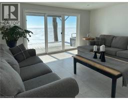 This stone and brick waterfront home in Port Dover offers approximately 2,000 sq. ft. of finished living space with 3 bedrooms and 3 bathrooms. Oversized windows and six waterfront patio doors flood the home with natural light and showcase stunning, unobstructed lake views throughout. Designed for seamless indoor-outdoor living, the walk-out basement and expansive upper and lower composite decks—spanning the full width of the home—create the perfect setting to relax and entertain while enjoying stunning water views. The open-concept living and dining areas flow effortlessly into an updated kitchen featuring custom cabinetry with an integrated refrigerator, quartz counters, open shelving, and a generous island. The main-floor primary suite is a true retreat complete with waterfront views and patio doors to the deck. A spa-like ensuite features a spacious glass shower, freestanding tub, and walk-in closet. A main-floor office is currently utilized as a laundry room, with additional laundry hookups also located in the primary walk-in closet. The lower walk-out level adds to the living space and includes two additional bedrooms, a full bathroom, and a bright family room with direct access to the lower deck. Additional features include a double-wide concrete driveway, new shingles (2021), shoreline protection, and a mature shade tree that enhances outdoor dining and entertaining. Experience the best of the Port Dover lifestyle in this bright, airy lakefront home—your perfect year-round lakehouse retreat. (id:61594)