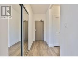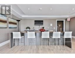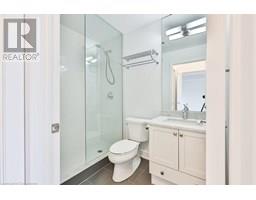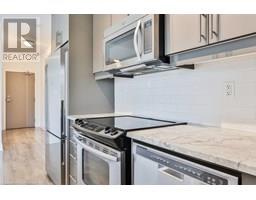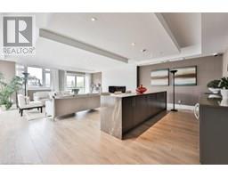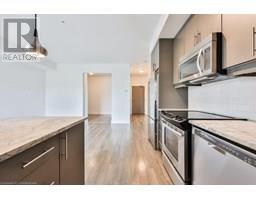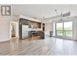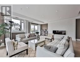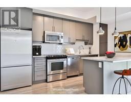 Stylish Condo Living Just Minutes from Downtown Oakville! Welcome to this bright and contemporary 2-bedroom, 2-bath end-unit condo ideally located near the lake and just a short stroll from vibrant downtown Oakville. With no neighbour on one side, enjoy enhanced privacy and quiet. Featuring an open-concept layout and elegant design touches, this unit offers comfort, convenience, and a relaxed urban lifestyle. The spacious living and dining area opens to a west-facing private balcony with unobstructed views over a manicured private school field, complete with a gas hookup for your BBQ, perfect for outdoor entertaining.The sleek kitchen is both stylish and functional, featuring Super White granite countertops, a Blanco stainless steel undermount sink, stainless steel appliances, and ample cabinet space. Both bedrooms are generously sized, and the bathrooms include upgraded cabinetry, adding a refined touch. Additional highlights include in-suite laundry, one underground parking space, and a storage locker for added convenience.Enjoy boutique building amenities like a fully equipped fitness centre, party room, lounge, and a rooftop terrace with beautiful views. All this just minutes from Oakville's waterfront, trails, parks, shops, restaurants, and GO transit. Whether you're a first-time buyer, investor, or looking to downsize, this home combines comfort, style, and a prime location.Extras: Torlys Terrawood satin-finish flooring in Trend Driftwood, stainless steel fridge, stove, built-in dishwasher, microwave, stacked washer/dryer, Hunter Douglas blackout + sheer blinds, and window coverings. (id:61594)